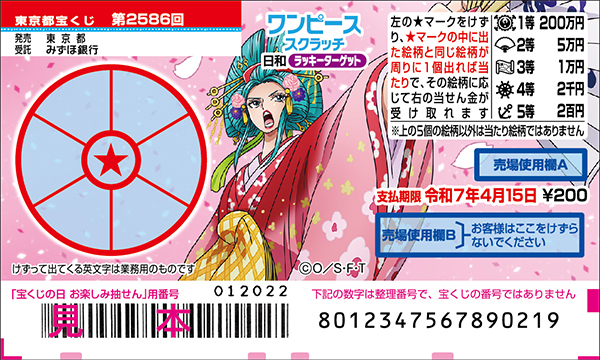 ●「ワンピーススクラッチ 日和 ラッキーターゲット」(4ブロック)は、1等賞金200万円で16日(火)まで発売中!