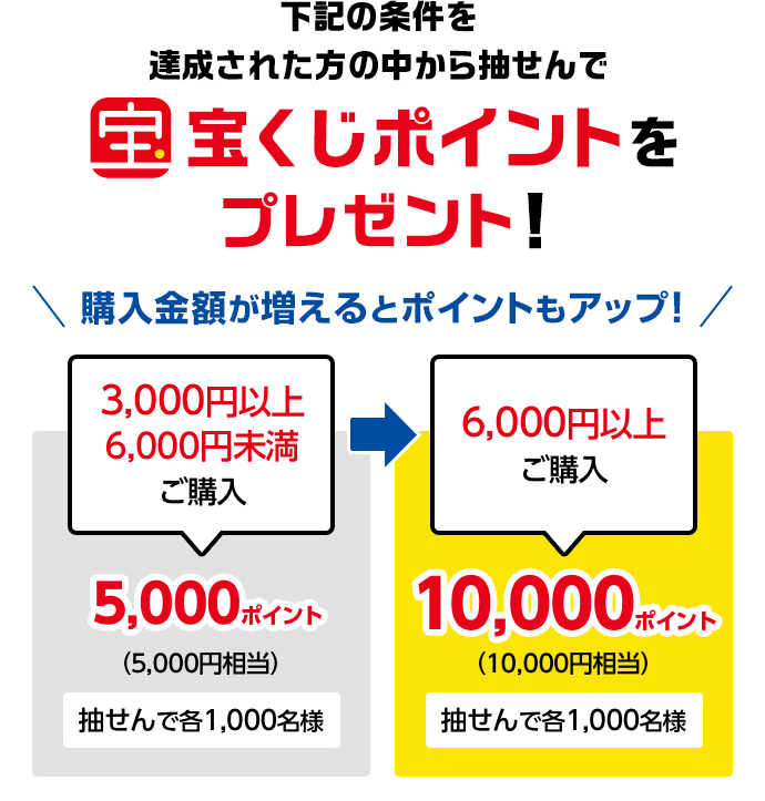 ※本キャンペーン終了後、厳正な抽せんを行い、宝くじポイントの付与をもって当せん者の発表とかえさせていただきます。