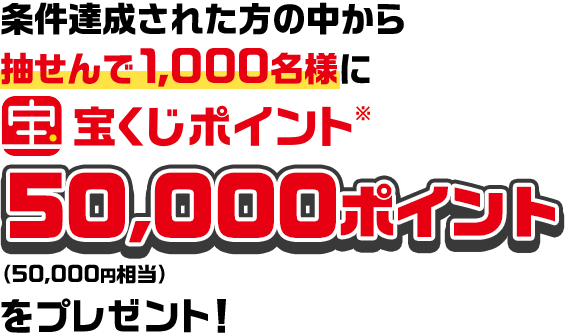 - ※本キャンペーン終了後、厳正な抽せんを行い、宝くじポイントの付与をもって当せん者の発表とかえさせていただきます。
