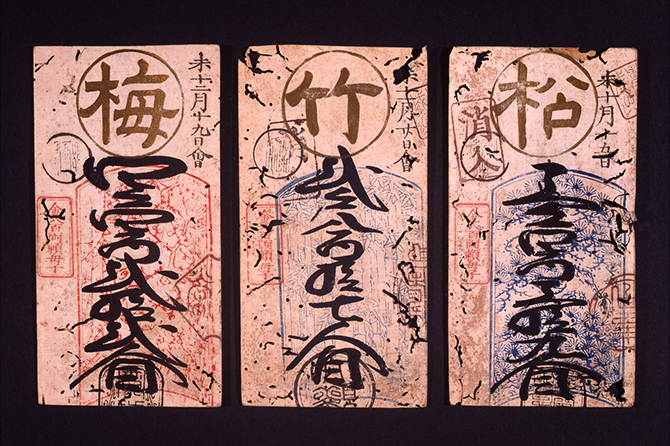 The Japanese lottery, Takarakuji, enjoys widespread popularity, and tickets are issued by local governments. It is said to have originated roughly 400 years ago in the early Edo period, when Ryuanji Temple on Mt. Mino in Settsu Province (present-day Osaka Prefecture) offered protective amulets. Over time, it became more associated with money and became popular in town as an opportunity to win a jackpot. This caused the Tokugawa shogunate to eventually issue a general ban, but it allowed temples and shrines to continue selling tickets. These officially sanctioned lotteries were called “Gomentomi.”