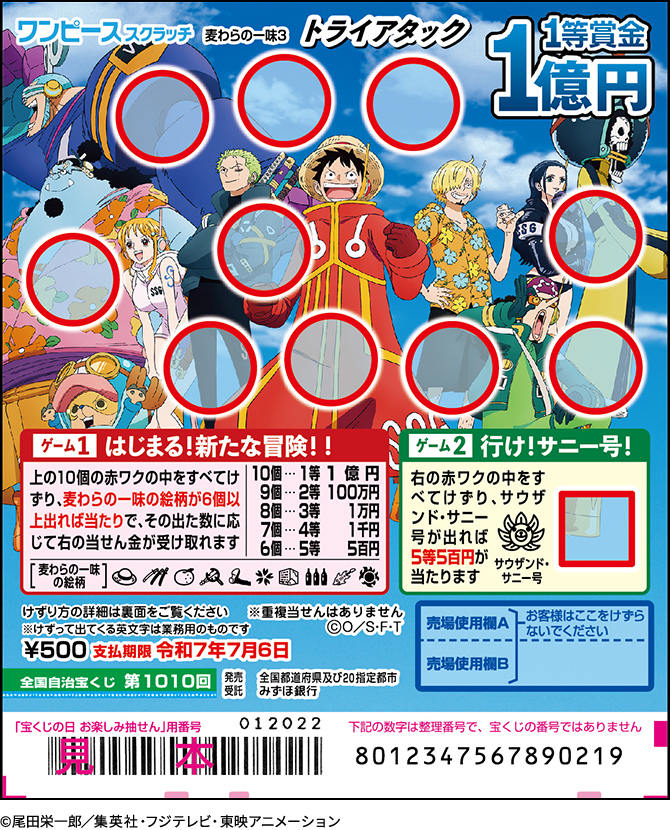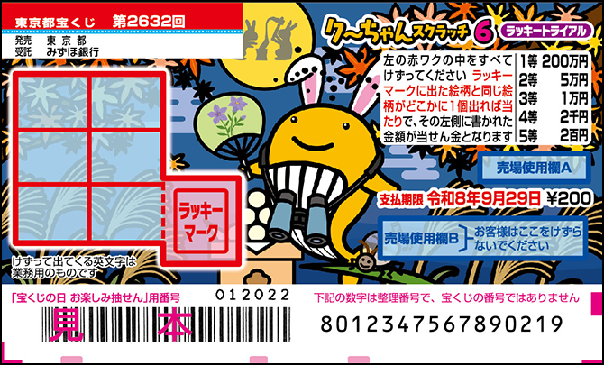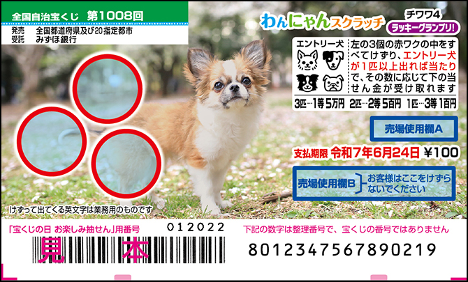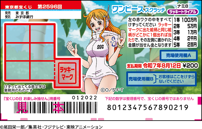 There is a wide variety to choose from, including ONE PIECE Scratch tickets featuring a series of popular characters, Wannyan Scratch tickets decorated with adorable dogs and cats, and Ku-chan Scratch tickets starring Ku-chan, the lottery’s mascot.
