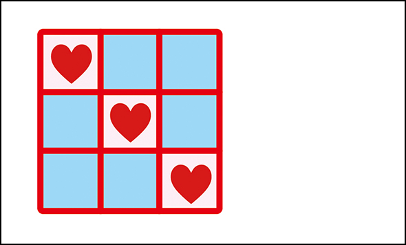 Scratch off all the red-framed squares. If three identical symbols line up in a row—vertically, horizontally, or diagonally—you win. The prize amount depends on the symbols that appear.