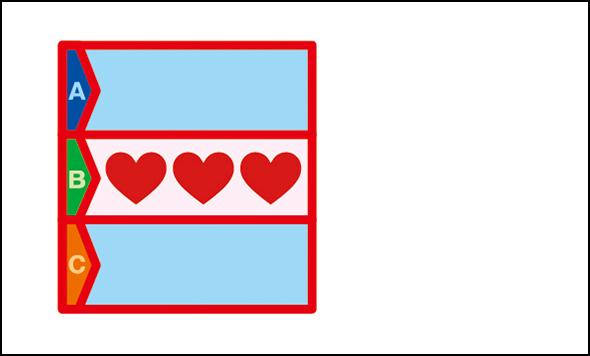 Scratch off all the red-framed squares. If three identical symbols appear in a horizontal row in any of the A, B, or C areas, you win, and the prize amount is determined by the symbol you matched.